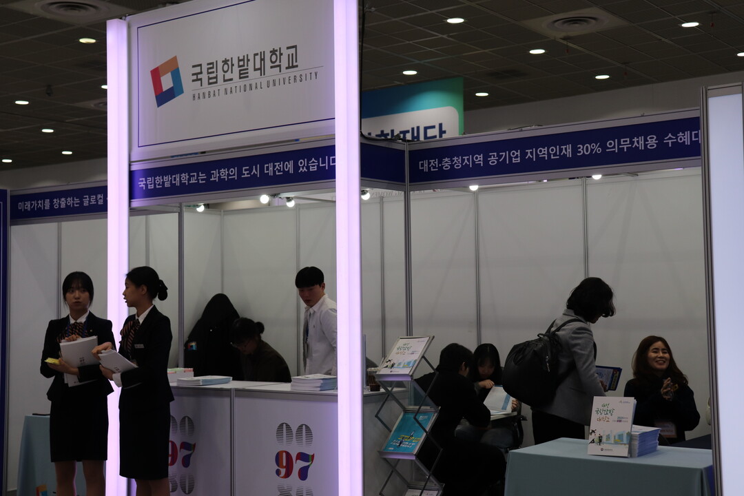 사진은 국립한밭대학교 부스에서 입시 상담을 받고 있고 있는 수험생들의 모습이다.