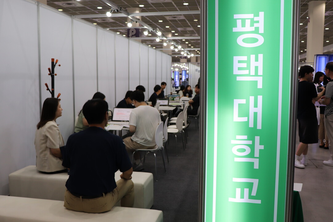 사진은 평택대학교 부스에서 상담을 받고 있는 수험생들의 모습이다.