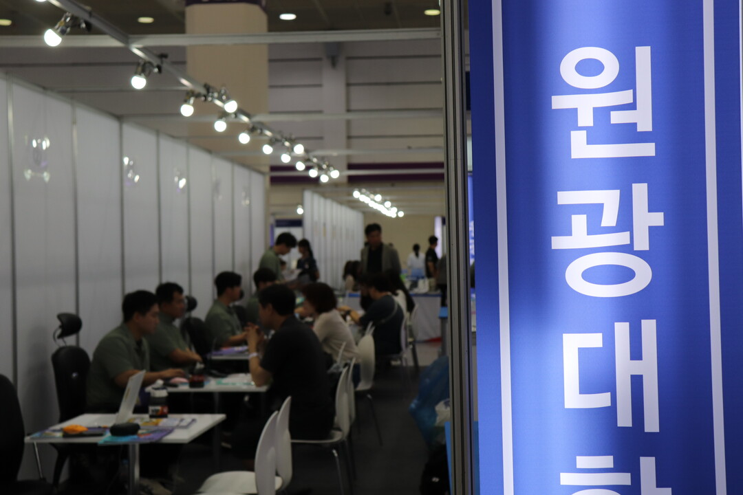 사진은 원광대학교 부스에서 입학상담을 받고 있는 수험생들의 모습이다.