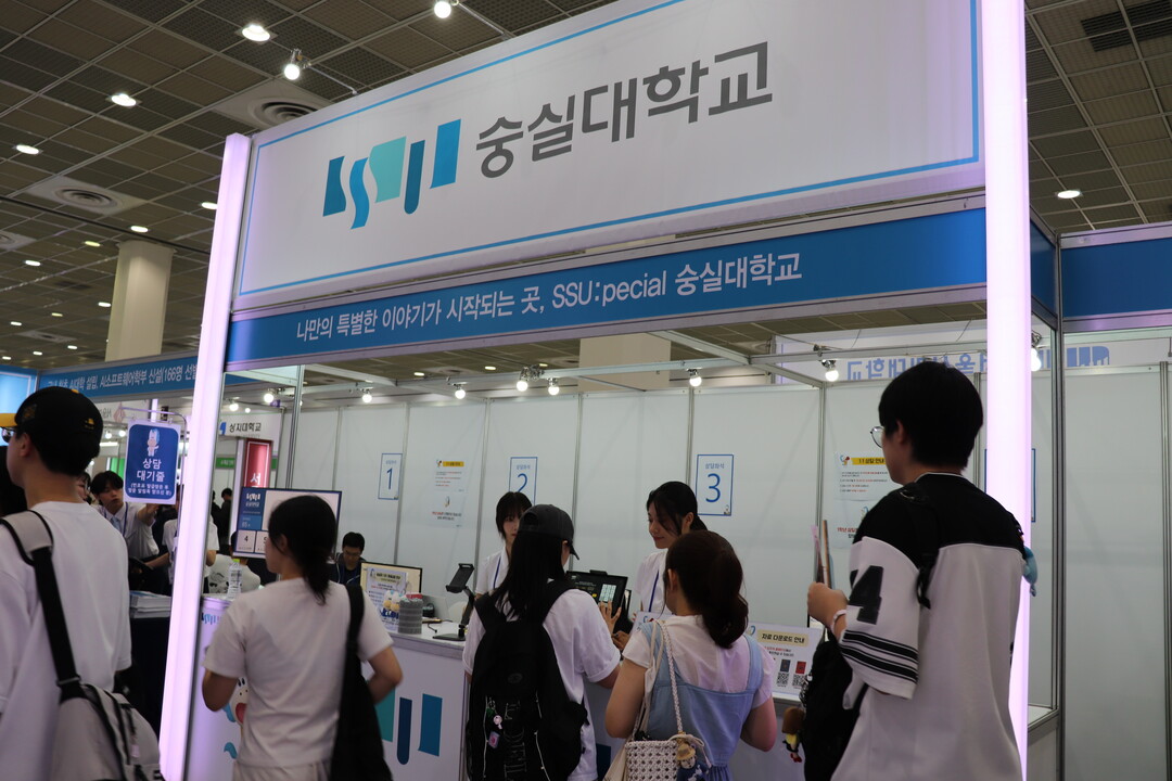 사진은 숭실대학교 부스에서 입학상담을 받기 위해 기다리고 있는 수험생들의 모습이다.