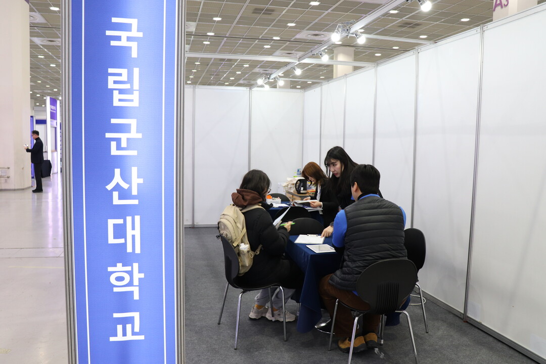 사진은 국립군산대학교 부스에서 입시 상담을 받고 있고 있는 수험생들의 모습이다.