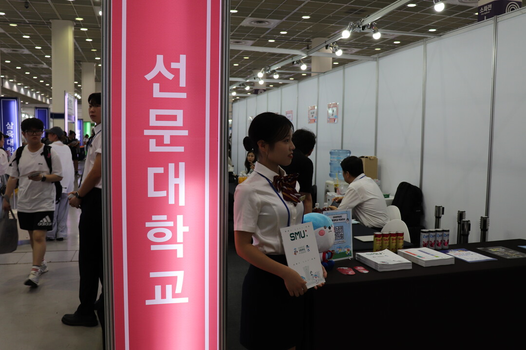 사진은 선문대학교 부스에서 입학상담을 받고 있는 수험생들의 모습이다.