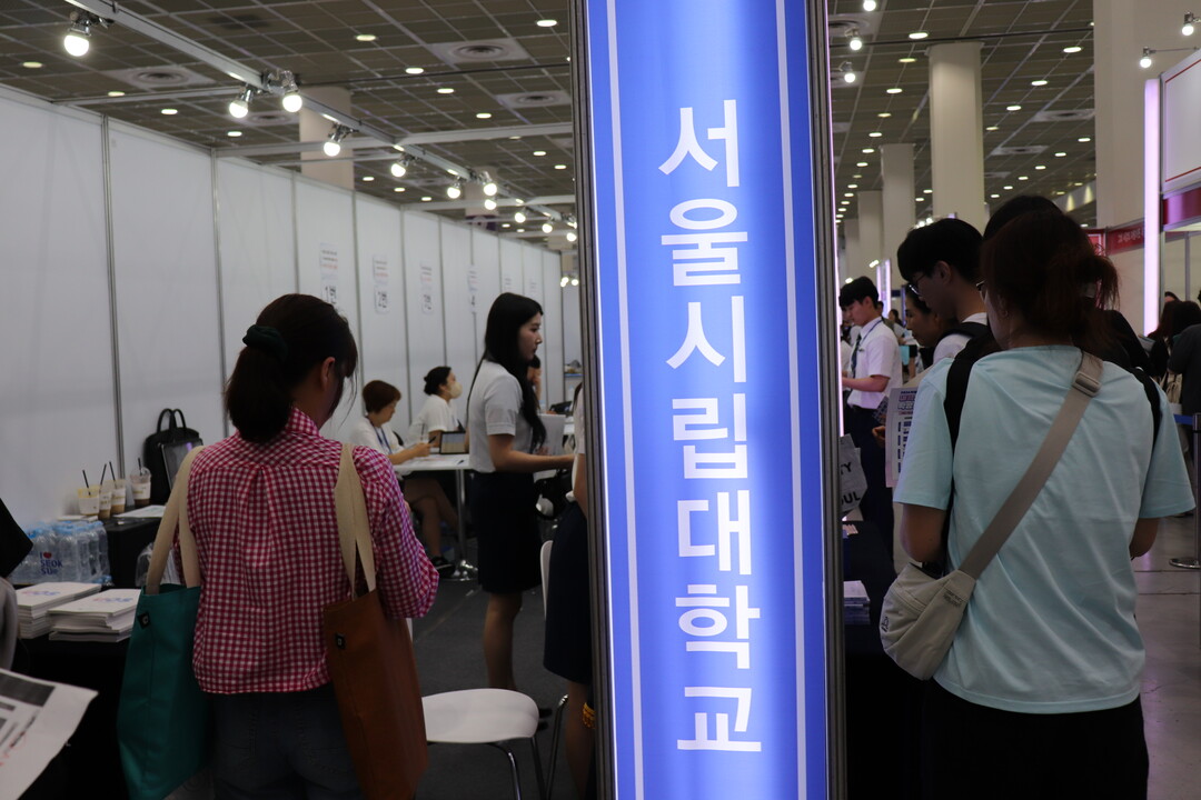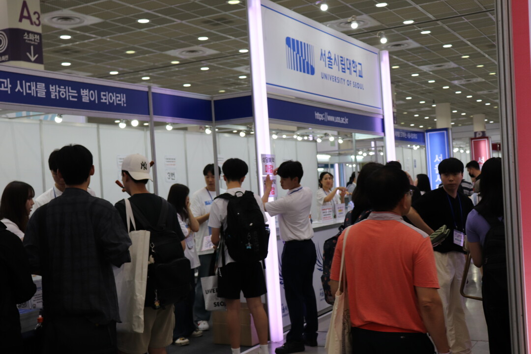 사진은 서울시립대학교 부스에서 입학상담을 받기 위해 기다리고 있는 수험생들의 모습이다.