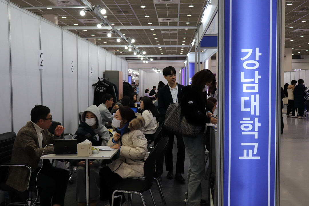 [대학저널 이선용 기자] 2024학년도 대입 정시모집을 앞두고 수험생과 학부모들이 입학 정보를 얻기 위해 발걸음을 재촉하고 있다. 이런 가운데 한국대학교육협의회는 수험생들의 궁금증 해소와 알찬 정보 제공을 위해 ‘2024학년도 정시 입학정보박람회’를 12월 14일부터 16일까지 3일간 서울 삼성동 코엑스에서 개최한다. 올해 정시 입학정보박람회는 전국 128개 대학이 참가했으며, 수험생들은 대학별 입학전문가와 일대일 맞춤형 상담 진행할 수 있다. 사진은 강남대학교 부스에서 입시 상담을 받고 있고 있는 수험생들의 모습이다.