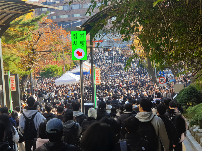 지난 16일 진행된 ‘2026학년도 동국대 수시모집 논술고사’를 위해 학교를 찾은 학생과 학부모들. 사진=동국대 제공 |