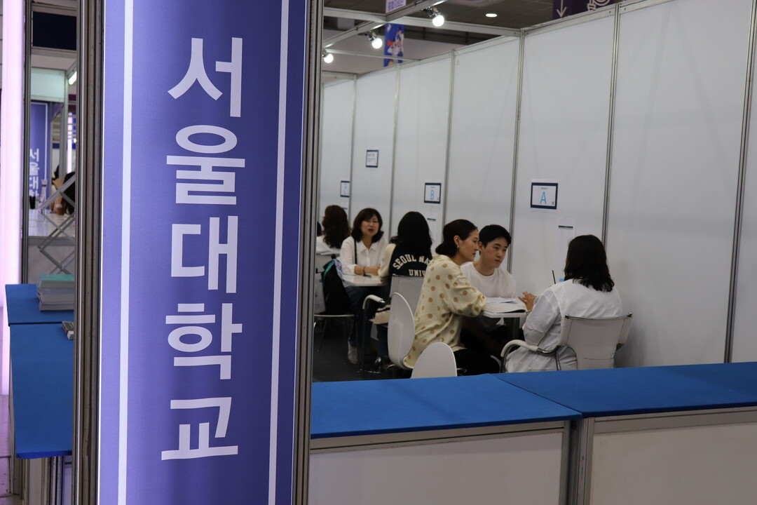 사진은 서울대학교 부스에서 입학상담을 받고 있는 수험생들의 모습이다.