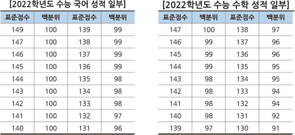 국어, 수학 최상위권 표준점수 차이 커