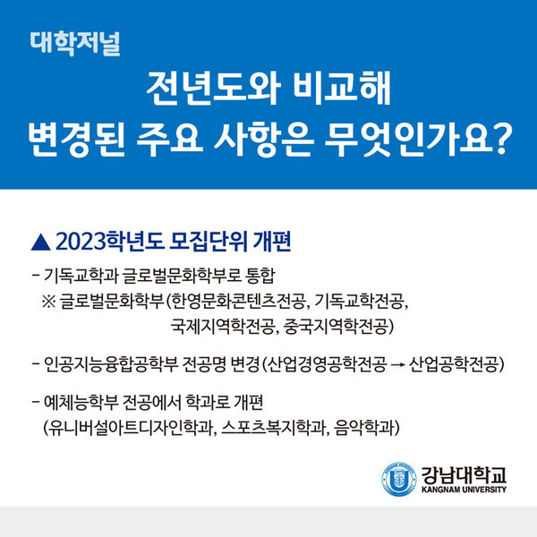 [카드뉴스] 강남대학교 2023 수시모집