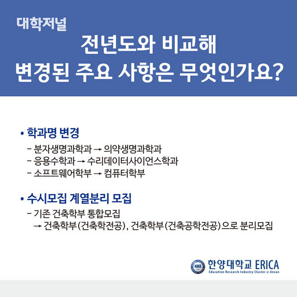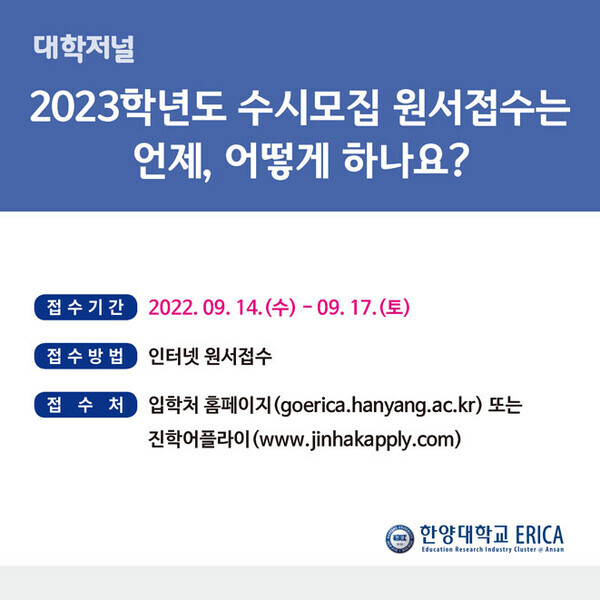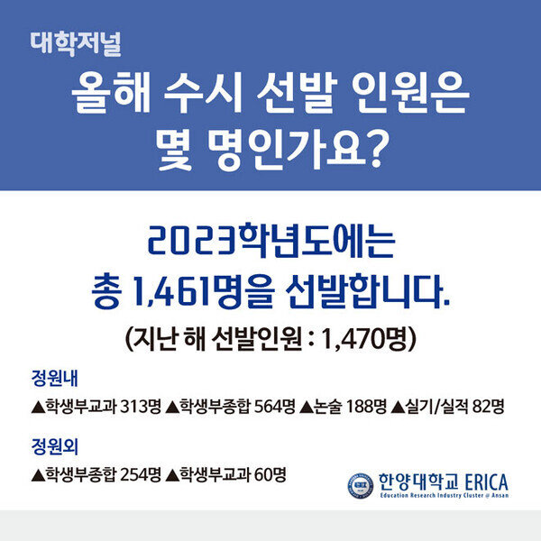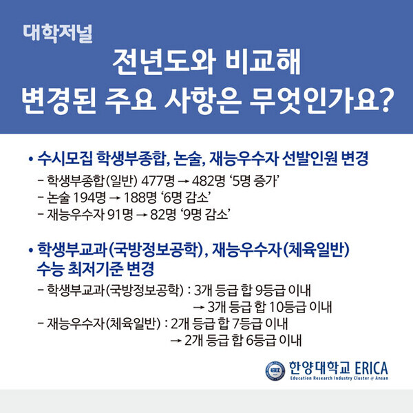 [카드뉴스] 한양대학교 ERICA 2023 수시모집