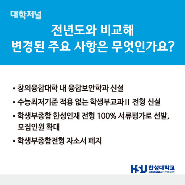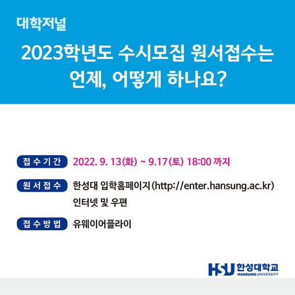 [카드뉴스] 한성대학교 2023 수시모집