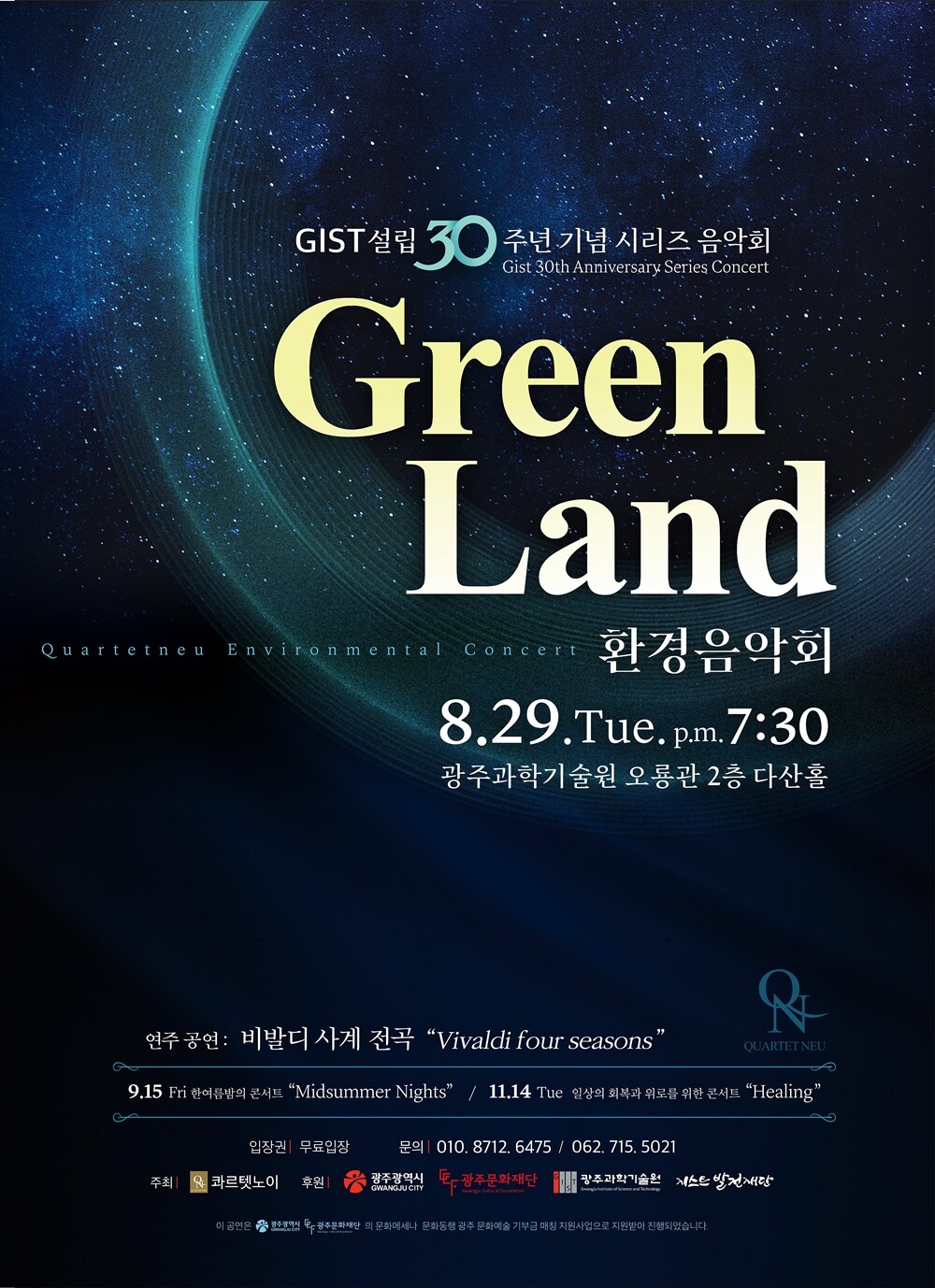 모두 3회로 구성된 이번 음악회의 첫 번째 공연은 오는 29일 오후 7시 30분, GIST 오룡관 2층 다산홀(535석)에서 ‘환경음악회 – 그린 랜드(Green Land)’를 주제로 열린다.