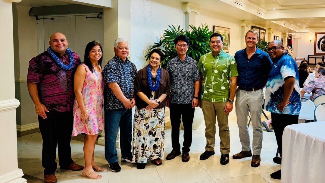 우승범 인하대 경기·인천씨그랜트센터장(왼쪽에서 다섯 번째)이 괌주립대에 방문해 씨그랜트 관계자들과 기념사진을 촬영하고 있다. 사진=인하대 제공 |