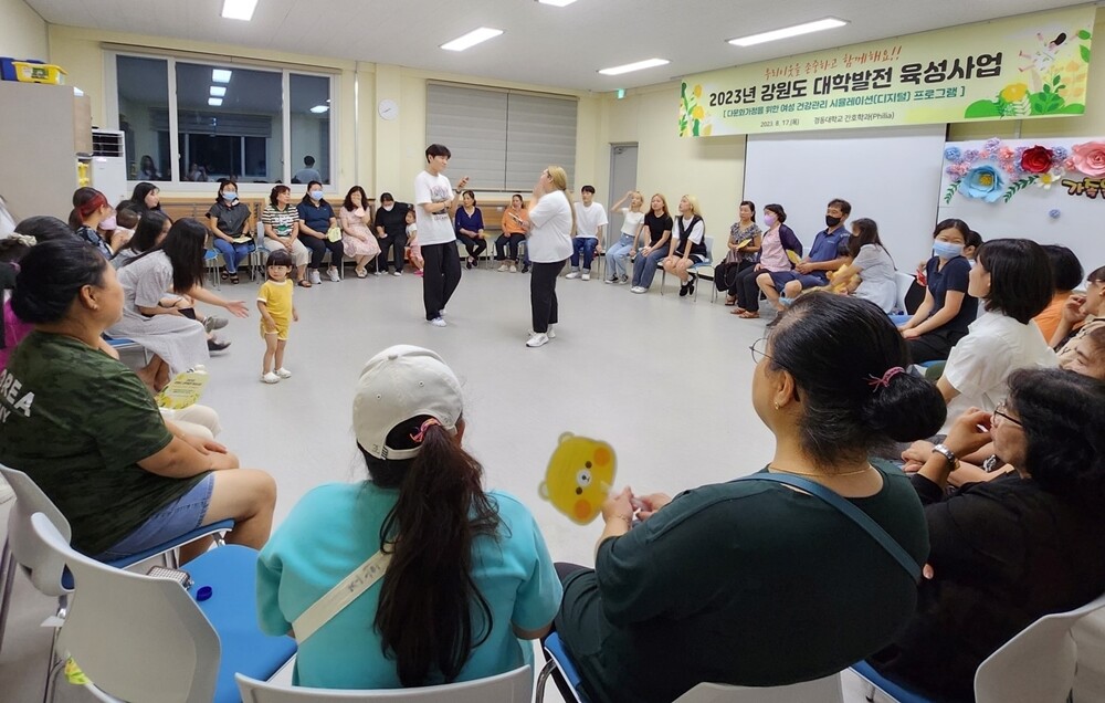 [대학저널 온종림 기자] 경동대학교가 17일 강원도 고성군 가족센터에서 ‘다문화가정을 위한 여성 건강관리 시뮬레이션 프로그램’을 운영했다. 강원도 대학발전육성사업의 일환으로 마련된 이 프로그램에는 고성군 다문화가정 여성과 아동 등 50여 명이 참석하였다.