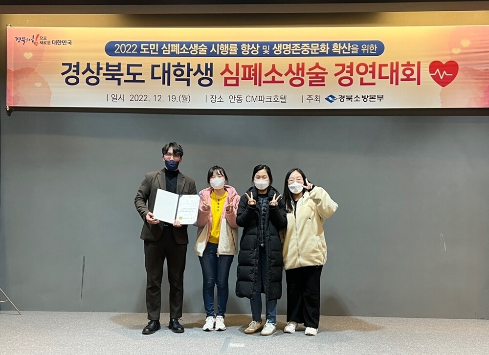 [대학저널 온종림 기자] 김천대학교 간호학과 학생들이 경북도 소방본부에서 주최한 2022년 경상북도 대학생 심폐소생술 경진대회에서 금상을 수상했다.