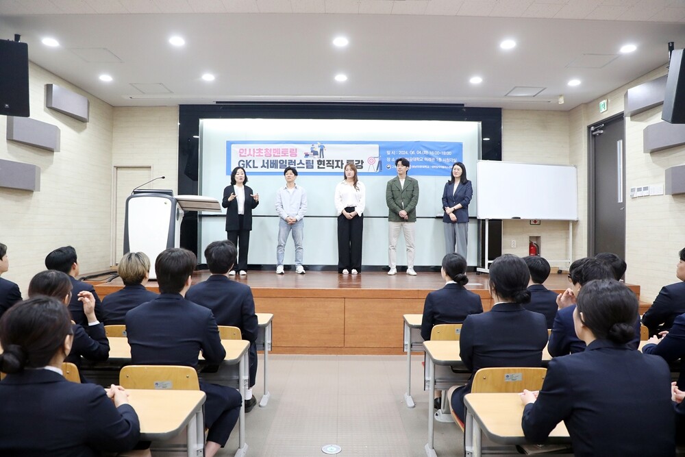 이번 특강에는 서울 드래곤시티점 서베일런스팀 강명희 부장, 이윤저 차장, 이성수 과장, 황푸른 매니저와 부산 롯데점 서베일런스팀 정나경 과장이 참석해 카지노&서베일런스전공 재학생을 대상으로 현직자 특강을 진행했다.