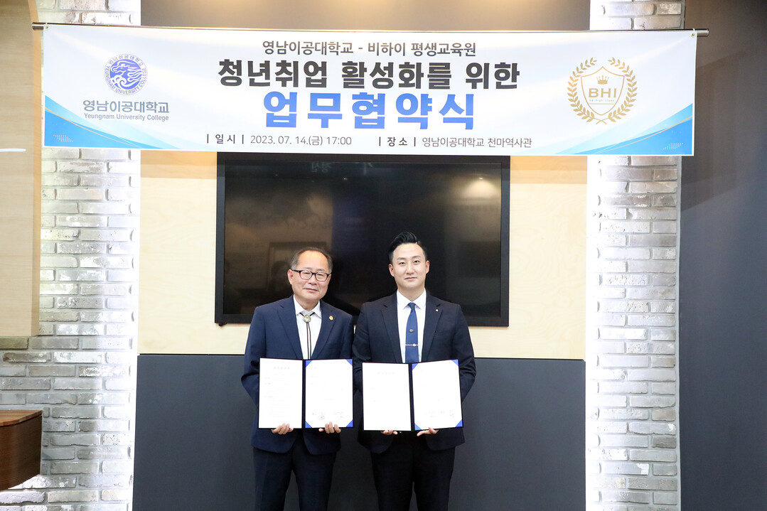 [대학저널 조영훈 기자] 영남이공대학교는 비하이평생교육원과 청년취업 활성화를 위한 업무협약을 체결했다고 18일 밝혔다.