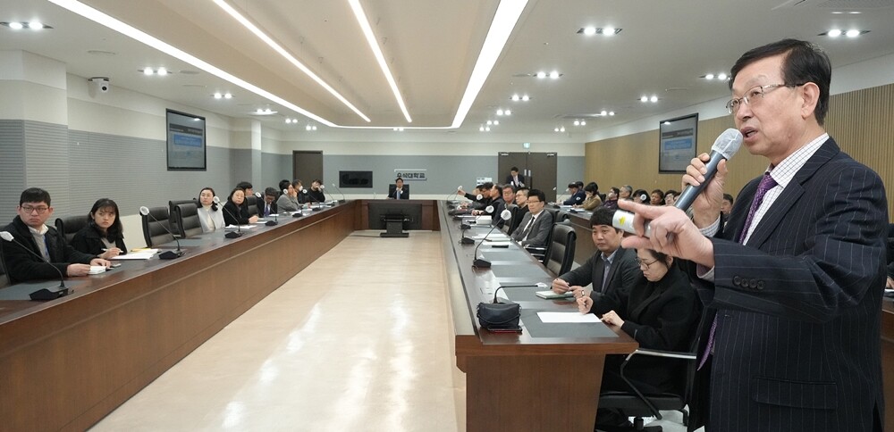 18일 전주캠퍼스 문화관 5층 화상회의실에서 열린 공청회에는 박노준 총장과 이홍기 글로컬 추진본부장, 교무위원, 교수, 직원 등이 참석했다.
