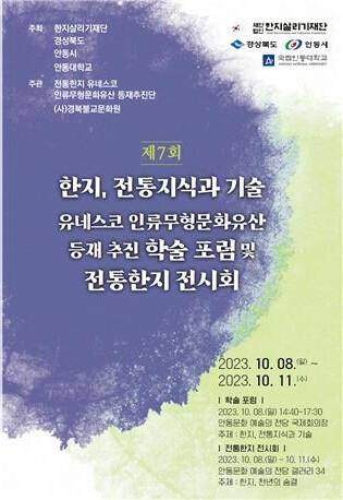 안동대학교와 경상북도, 안동시, 한지살리기 재단이 공동 주최하는 이번 행사는 8일 오후 3시부터 6시까지 안동문화 예술의 전당 국제회의장에서 ‘한지, 전통지식과 기술’이라는 주제로 ‘제7회 전통한지 학술포럼’이 열린다. 이에 함께 갤러리34에서는 ‘한지, 천년의 숨결’ 특별전시회가 11일까지 열린다.
