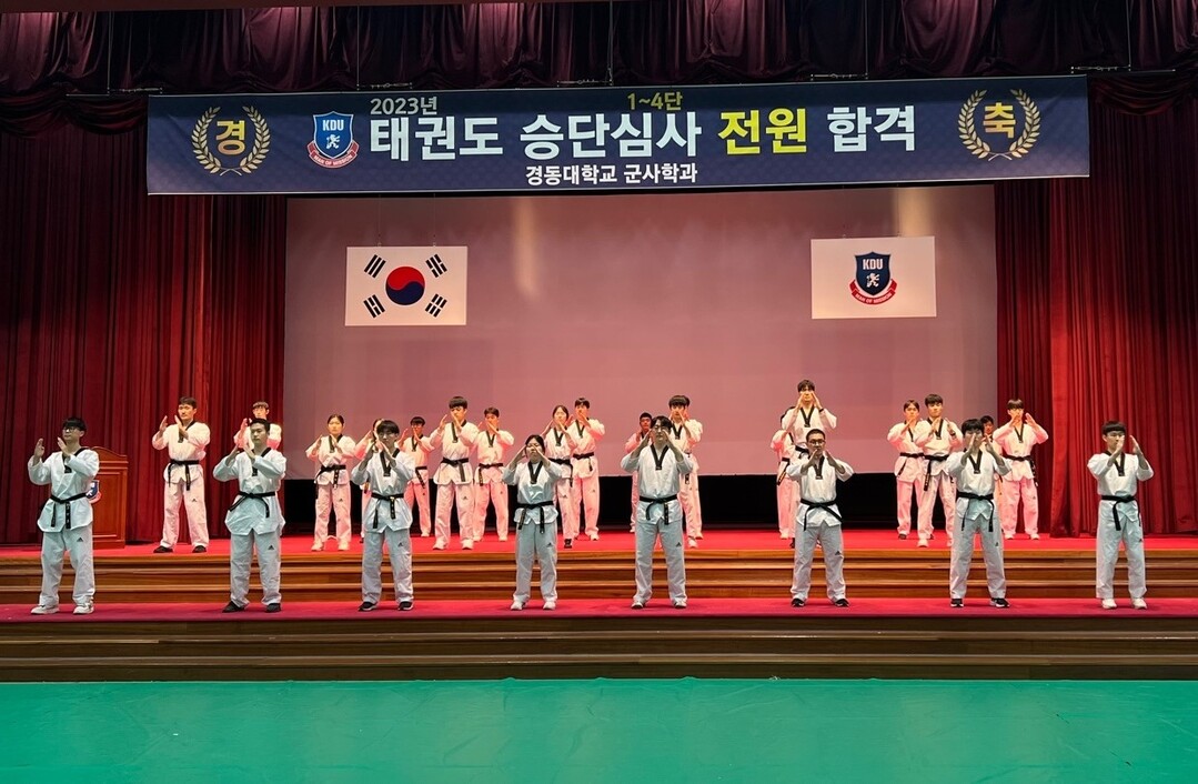 [대학저널 온종림 기자] 경동대학교 군사학과 재학생 전원이 지난 1일 국기원 주관 태권도 승단심사에서 1단에서 4단까지 단증을 획득했다.