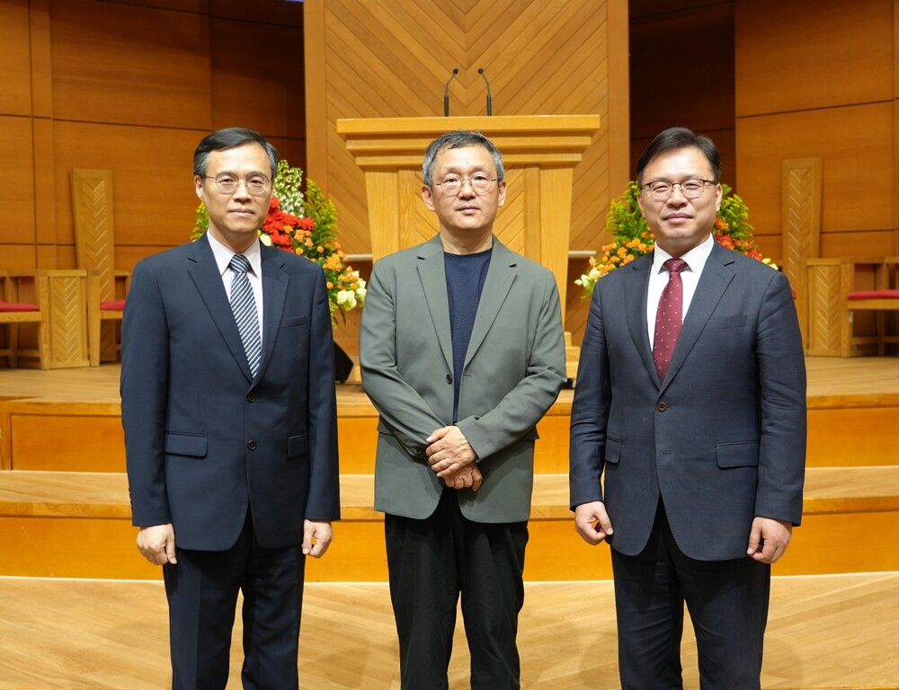 한신대 종교와과학센터가 ‘기후 위기에서 담대한 전환으로’라는 주제로 공개포럼을 진행했다. 왼쪽부터 종교와과학센터 전철 센터장, 조천호 박사, 예닮교회 서평원 목사. 사진=한신대 제공 |