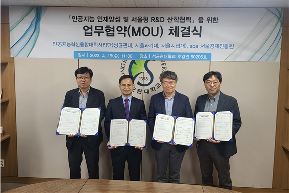 [대학저널 온종림 기자] 성균관대학교는 인공지능혁신융합대학사업단이 서울과기대와 서울시립대의 인공지능혁신융합대학사업단 및 서울경제진흥원(SBA)과 다자간 업무협약(MOU)을 체결했다고 20일 밝혔다.