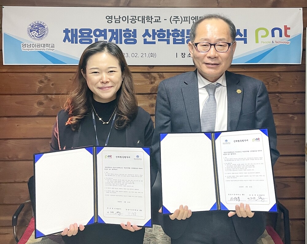 [대학저널 온종림 기자] 영남이공대학교는 2차전지와 전자소재용 기기 등을 제조하는 상장 중견기업인 피엔티와 채용연계형 산학협력을 체결했다고 23일 밝혔다.