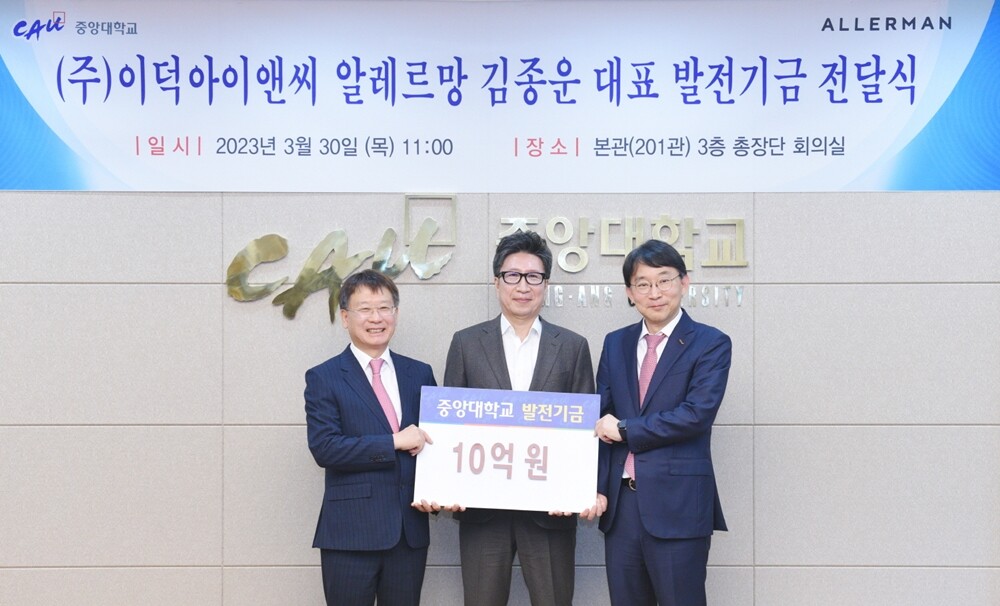 [대학저널 온종림 기자] 중앙대는 침구 브랜드 알레르망으로 잘 알려진 이덕아이앤씨 김종운 대표가 10억원을 기부했다고 7일 밝혔다.