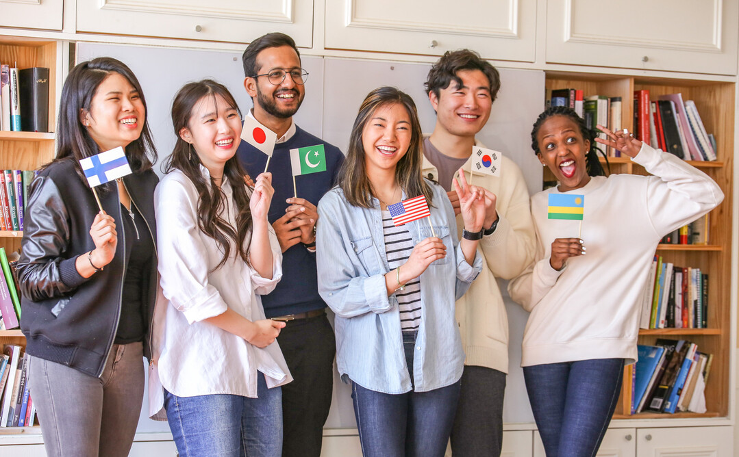 | 한동대학교 외국인 유학생들이 수업에 참여하기 직전 활짝 웃고 있다. 사진=한동대 제공 |