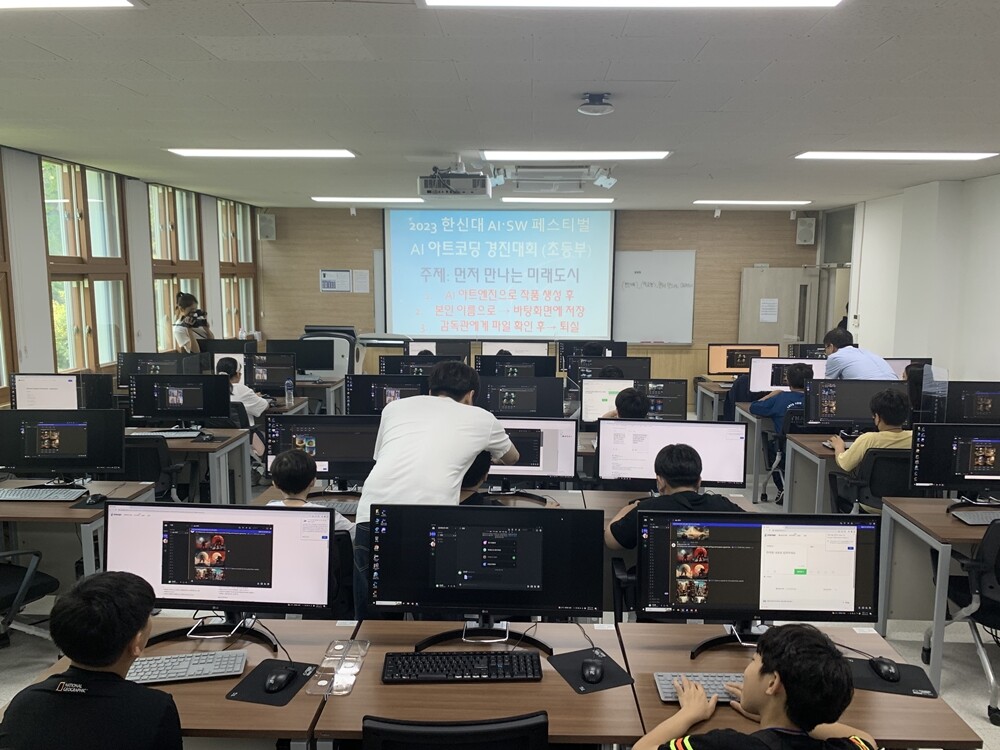 올해 상반기에 진행된 디지털새싹 캠프의 초등부 경진대회 ‘AI 아트코딩 챌린지’ 모습. 사진=한신대 제공 |