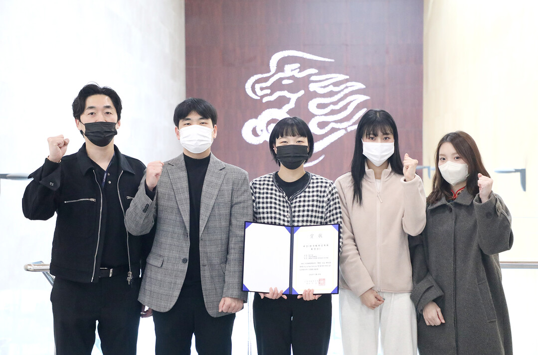 | 2022 화학공학 대학생 Fun&Fun Festival에서 대상을 수상한 (왼쪽부터)영남이공대 화장품화공계열 이종민 교수, 황지섭, 이유미, 권유주, 이진희 씨. 사진=영남이공대 제공 |