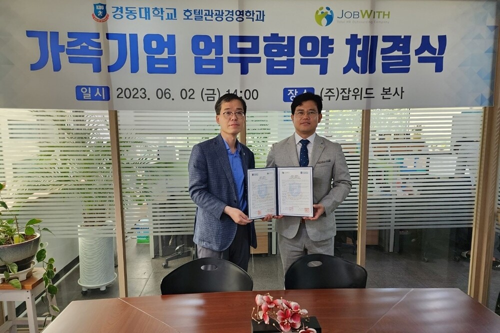 잡위드와 경동대 호텔관광경영학과는 협약에 따라 향후 ▲학생 직무능력 강화를 위한 현장실습 ▲맞춤형 채용설명회 개최 등 기업맞춤형 전문인재 양성을 위해 상호 협력한다.