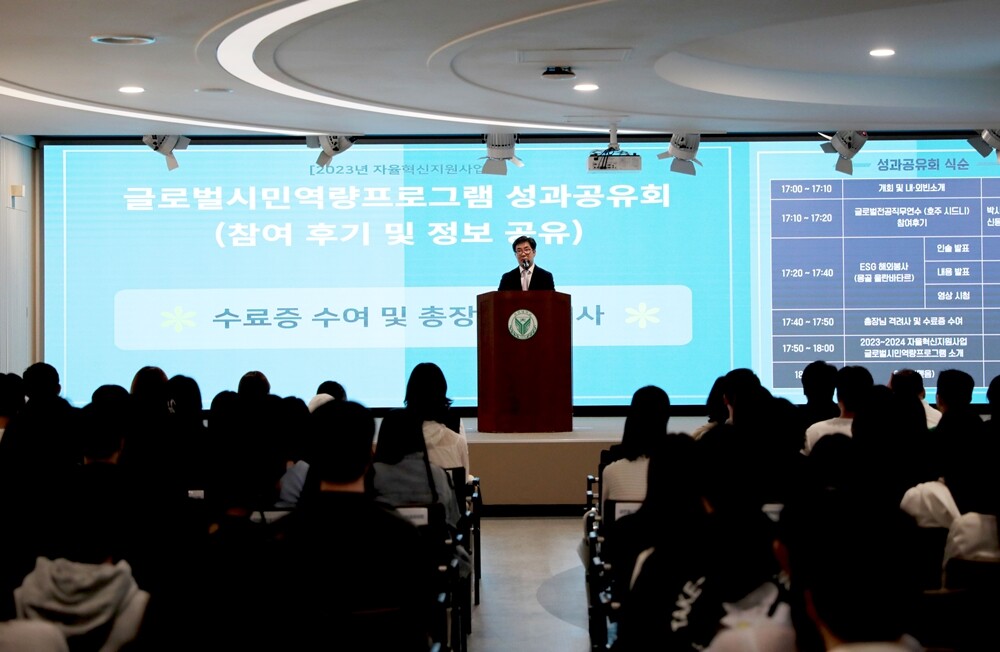 성과공유회는 2023학년도 하계방학을 이용해 몽골에서 ESG해외봉사활동을 펼친 봉사단과 호주로 파견됐던 글로벌전공직무연수단의 활동내용과 성과 및 정보를 대학 구성원과 함께 공유하는 자리로 마련됐다.