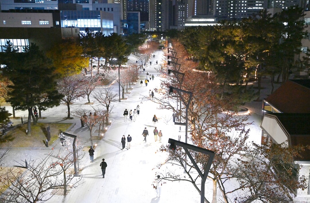 이와 함께 보행로를 비추는 조명은 사계절에 맞춰 테마별로 변하도록 설치해 학생들의 휴식과 야외학습은 물론, 벚꽃축제 등 행사도 즐길 수 있는 공간이 되도록 했다.