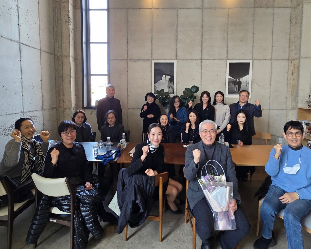 가톨릭관동대 VERUM교양대학이 개최한 ‘AI 시대 교양교육’ 성과·전략 라운드테이블 참석자들이 기념촬영을 하고 있다. 사진=가톨릭관동대 제공 |