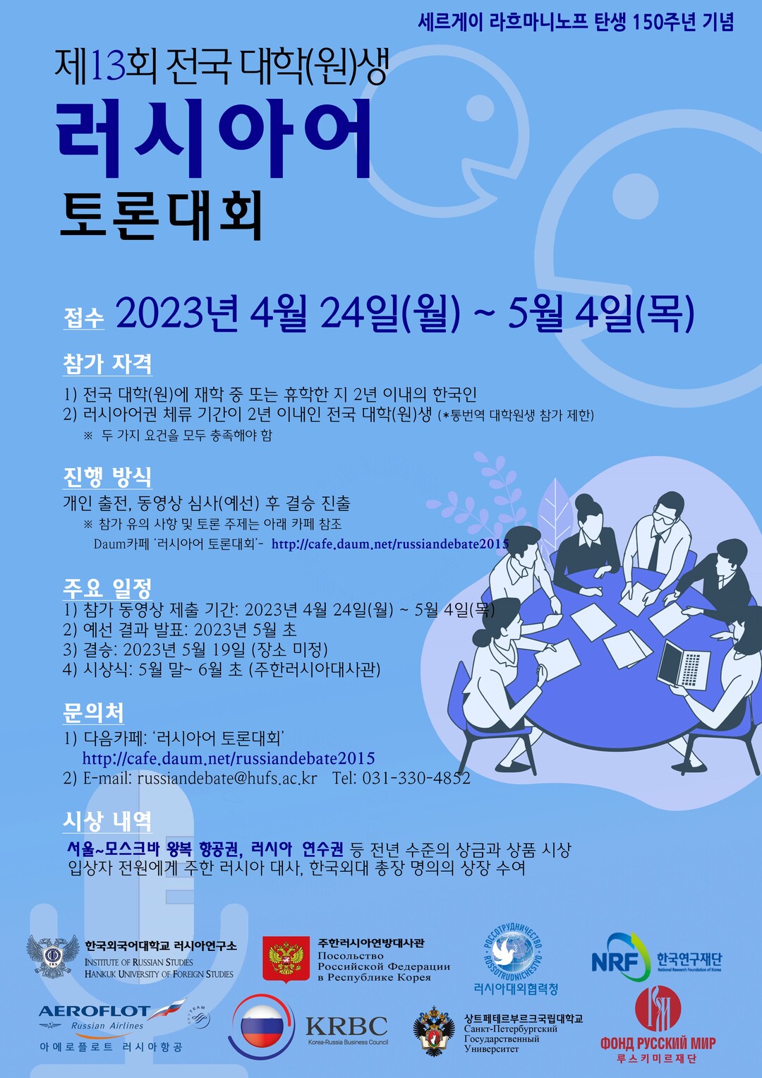 한국외국어대 러시아연구소와 주한 러시아 대사관이 공동주관하는 이 대회는 이날부터 5월 4일까지 접수된 예선 동영상의 심사를 통과한 8명의 학생이 최종 결승에 진출한다.