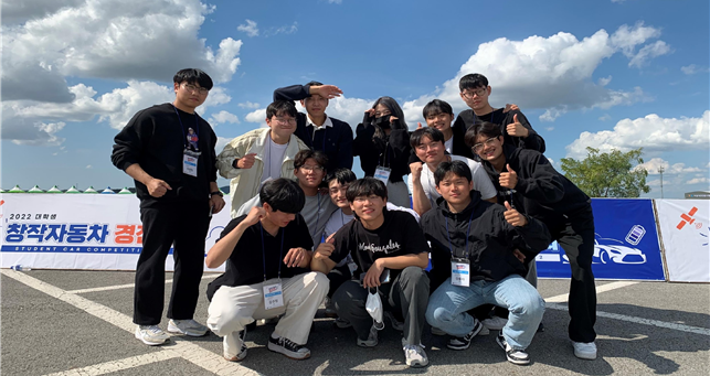 ‘2022 국제 대학생 창작자동차 경진대회’ 자율주행차 부문에서 대상을 수상한 국민대 KUUVe 팀 회원들이 '엄지척'하며 수상을 기뻐하고 있다. 사진=국민대 제공 |