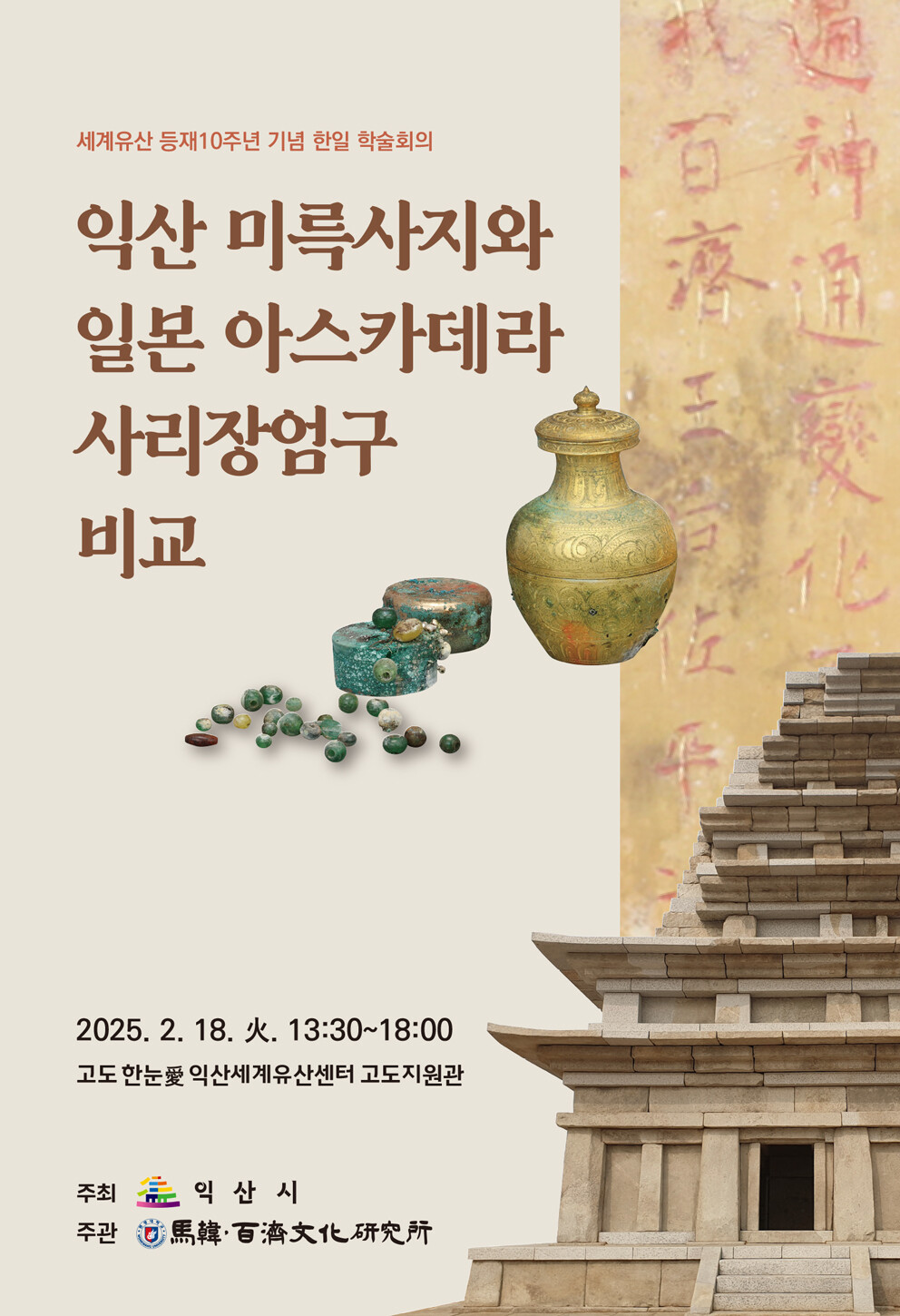 익산시가 주최하고 원광대 마한·백제문화연구소가 주관하는 이번 학술회의는 백제역사유적지구 세계유산 등재 10주년을 맞아 익산의 백제문화가 일본 불교문화 형성에 미친 영향을 밝히고, 세계유산 도시 익산의 위상을 높이기 위해 마련됐다.