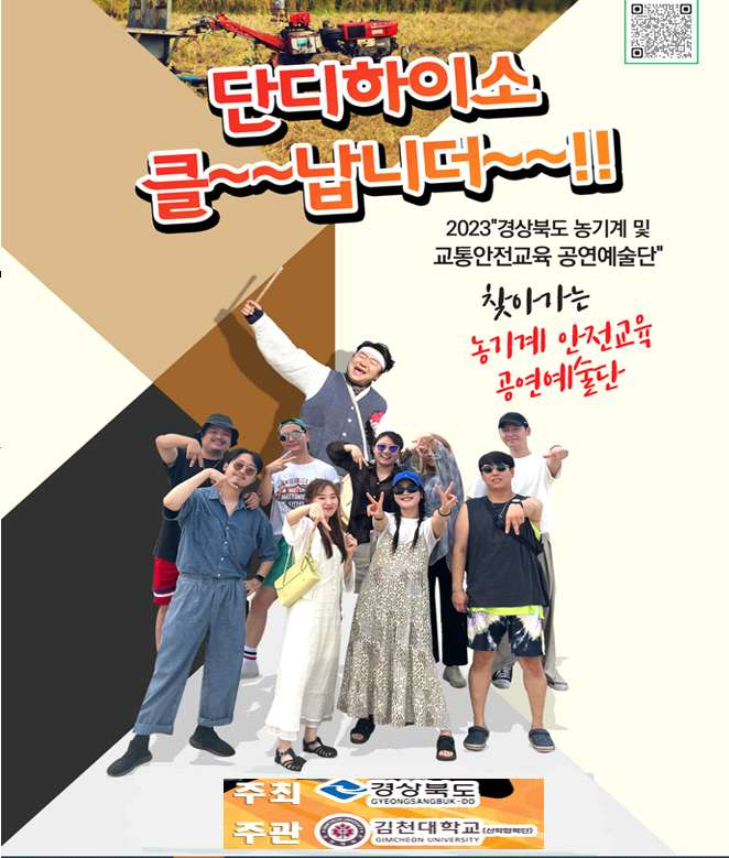 경상북도가 주관하는 경상북도 농기계 및 교통안전교육 “단디하이소 클 납니더~~”사업에 선정된 김천대는 2024년, 경상북도 일원에서 안전교육 사절단 운영 및 공연을 진행하게 된다.