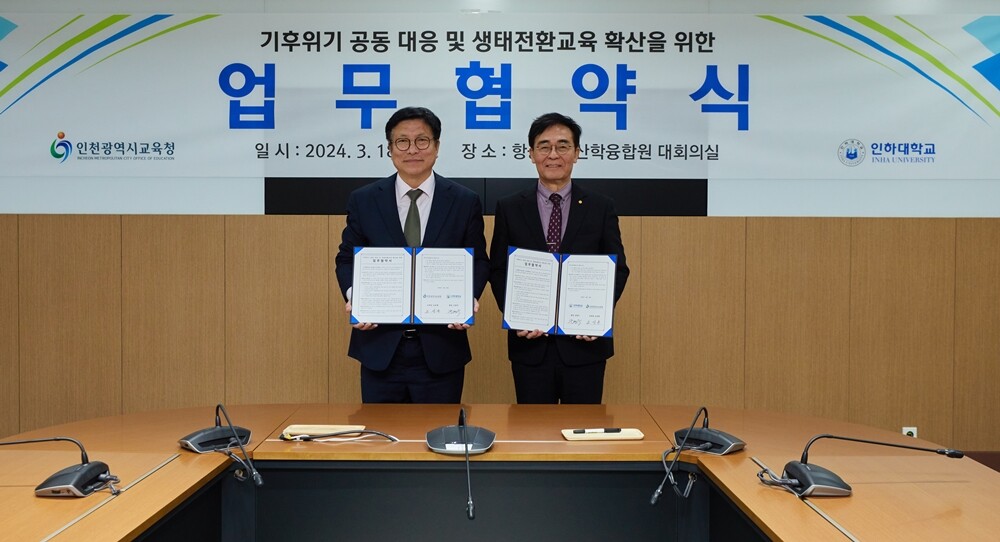 인하대는 교육부 인문사회융합인재 양성사업 환경 부문에 선정돼 기후위기대응사업단을 운영하면서 기후위기 대응 융합교육을 확대하고 있다. 이번 협약을 통해 생태전환교실, 탄소중립시스템 구축 등으로 생태전환교육을 추진하고 있는 인천시교육청과 시너지 효과를 발휘해 교육 성과를 창출할 수 있을 것으로 기대하고 있다.
