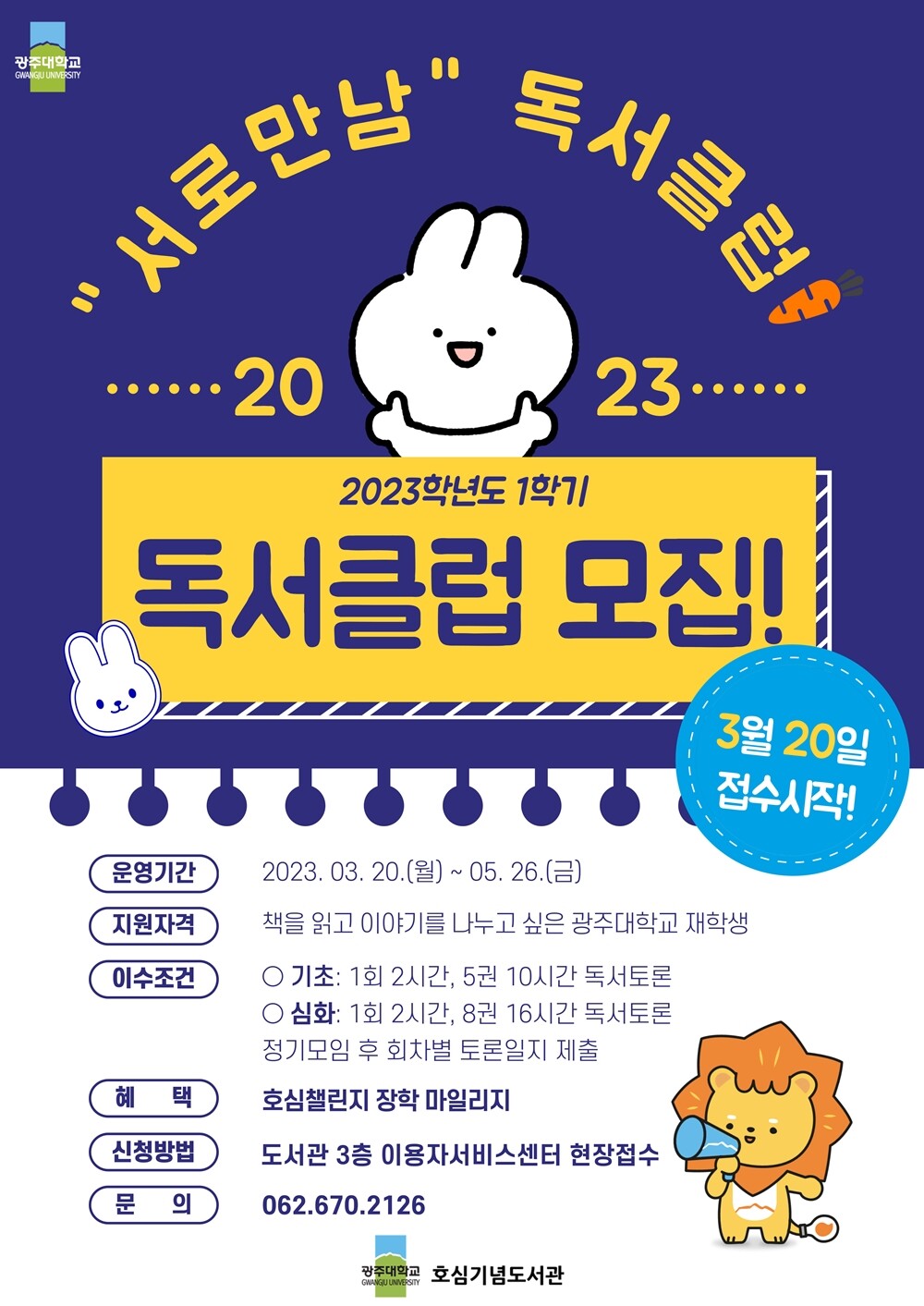 [대학저널 문차영 기자] 광주대학교는 재학생들의 독서 생활화와 토론문화 확산을 위해 20일부터 ‘서(書)로만남 독서클럽’ 운영을 한다.