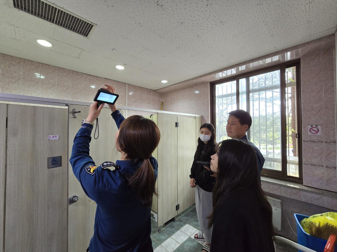 유원대가 대학 내 화장실 및 다중이용시설에 대한 불법촬영 합동점검을 영동경찰서와 함께 실시하고 있다. 사진=유원대 제공 |