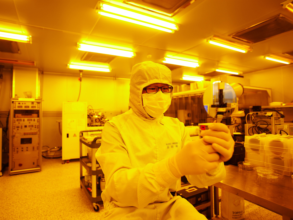아주대 한 연구원이 클린룸에서 반도체 연구를 하고 있다. 사진=아주대 제공 |
