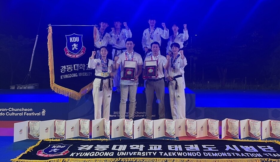 [대학저널 온종림 기자] 경동대학교가 지난 18일부터 24일까지 춘천 송암스포츠타운에서 열린 ‘2023 강원·춘천 세계태권도문화축제’ 태권도시범경연대회 개인전 시니어Ⅰ,Ⅱ 부분 등에서 12개 상을 수상했다. 이 대회는 세계태권도연맹(WT)이 주최했다.
