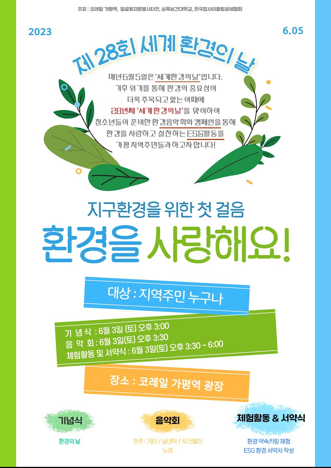 캠페인은 세계 환경의 날을 기념하는 만큼, 지역인들을 대상으로 재활용 소재를 이용해 제작하는 환경약속키링체험과 ESG환경 서약서작성 활동이 함께 진행된다.