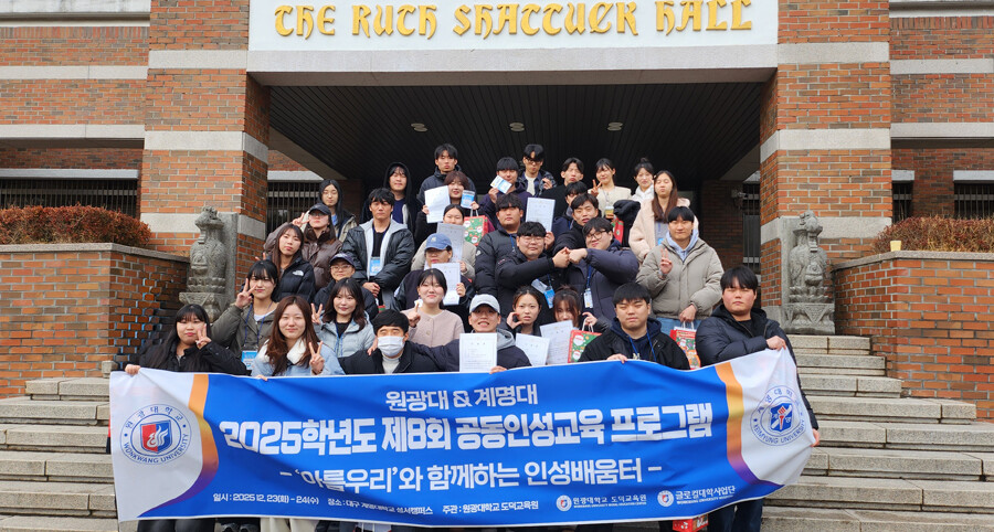 [대학저널 이선용 기자] 원광대학교 도덕교육원과 계명대학교 계명인성교육원이 양교 재학생을 대상으로 ‘제8회 공동인성교육’ 프로그램 진행했다.
