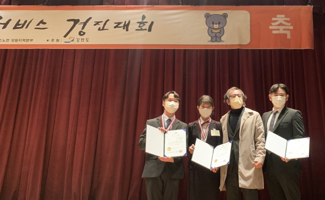 [대학저널 오혜민 기자]경동대학교는 지난 18일 제20회 강원관광서비스 경진대회 ’테이블셋팅·서비스‘부문에서 외식사업학과 한종민·이유진 씨가 은상을, 정용하 씨가 동상을 수상했다고 21일 밝혔다.