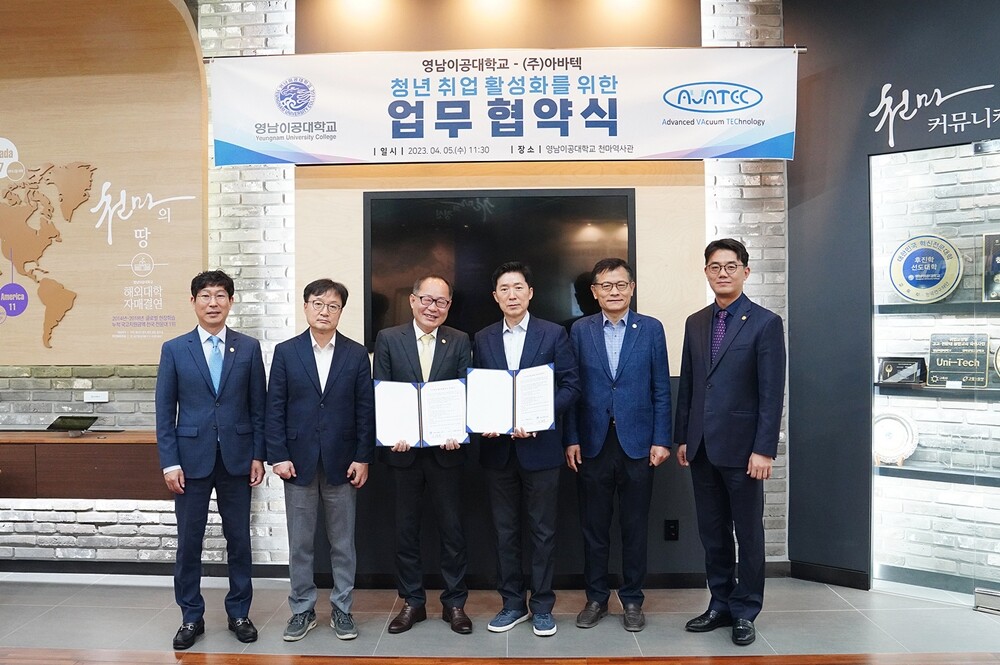 [대학저널 온종림 기자] 영남이공대학교는 지난 5일 고기능성 박막코딩 제품을 생산하는 아바텍과 청년취업 활성화를 위한 업무 협약을 체결했다고 6일 밝혔다.