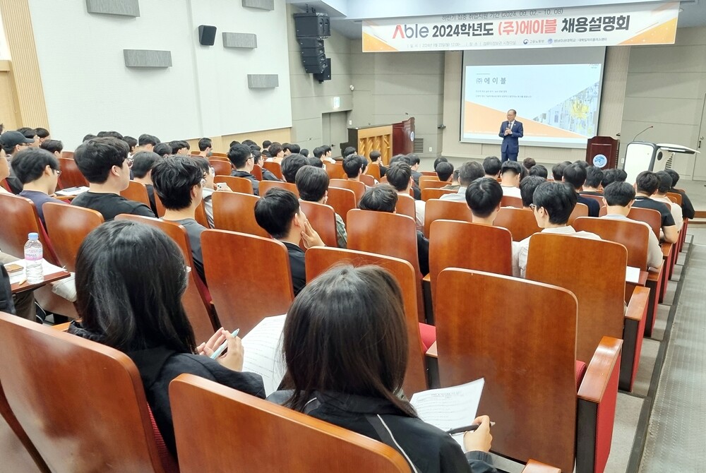 23일과 24일 진행된 이번 채용설명회에는 스마트융합기계계열, ICT반도체전자계열, 전기자동화과 등 공학계열 재학생 300여 명이 참석해 ㈜에이블과 국제엘렉트릭코리아㈜의 채용에 관한 궁금증을 해결했다.
