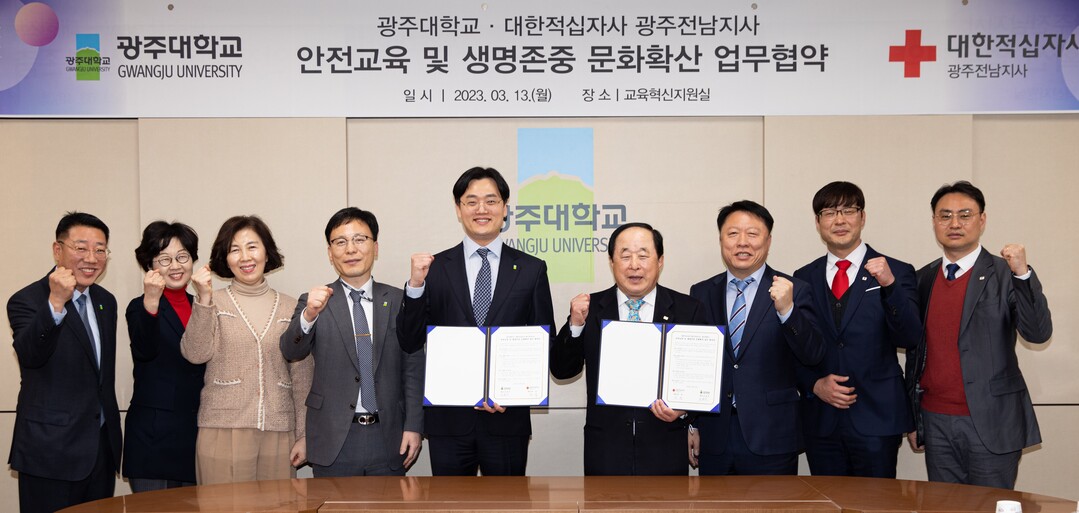 광주대와 대한적십자사 광주전남지사는 지난 13일 업무협약을 맺고 광주대 재학생 및 교직원 대상 안전교육과 안전문화 확산에 상호 협력하기로 했다.