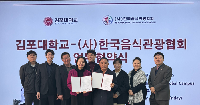 [대학저널 온종림 기자] 김포대학교가 지난 2월 20일 글로벌캠퍼스에서 (사)한국음식관광협회와 업무협약(MOU)을 체결하고 글로벌 인재 양성과 외국인 유학생 유치 확대를 위한 협력 체계를 구축했다.